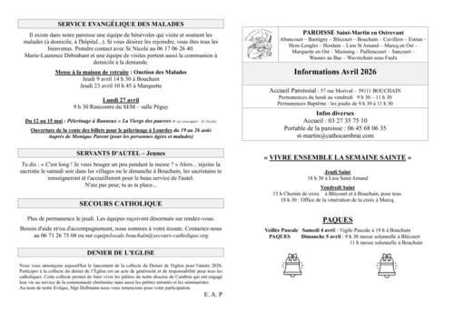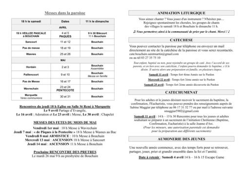 rendez-vous d'avril dans la paroisse Saint Martin