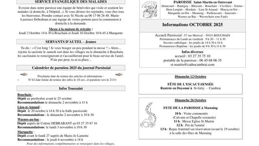 l'ensemble des rendez-vous dans la paroisse programmés au mois d'octobre
